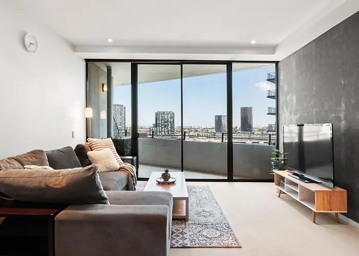 Featuring a rooftop swimming pool, the spacious Sea View, Gym & Pool, 2 Bedrooms 2 Bathrooms is a 6-minute walk from The District Docklands. For those travelling by car, this apartment offers free private parking on site.